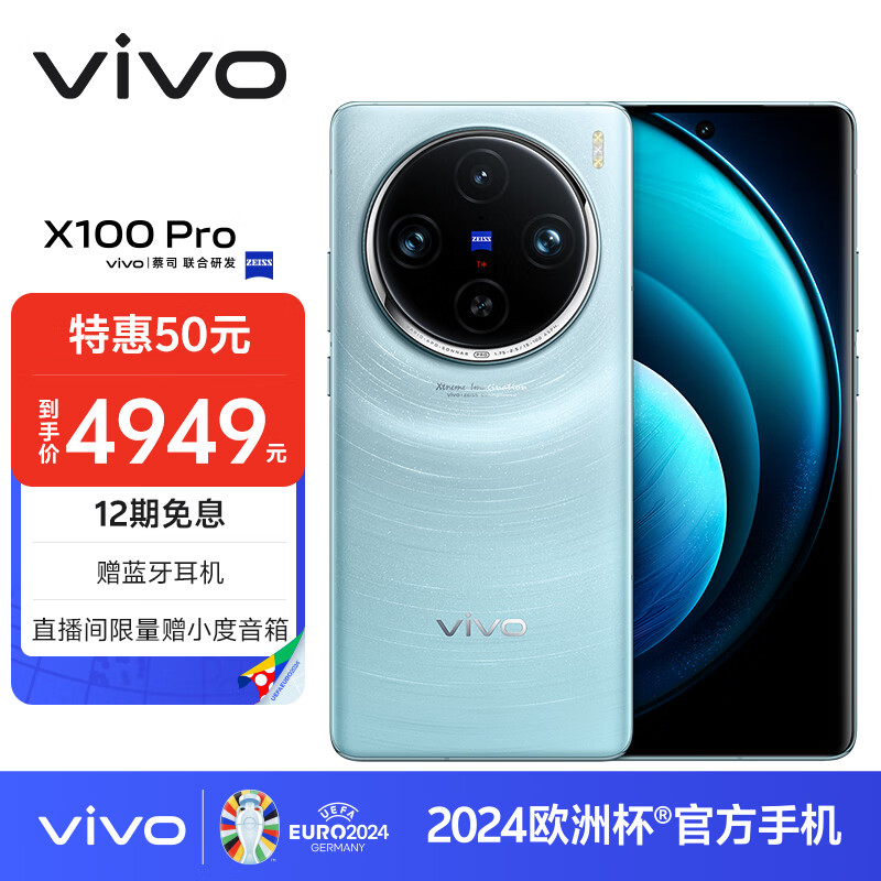 vivo X100 Pro 12GB+256GB 星迹蓝 蔡司APO超级长焦 蓝晶×天玑9300 5400mAh蓝海电池 自研芯片V3 手机价格:4999.00元!