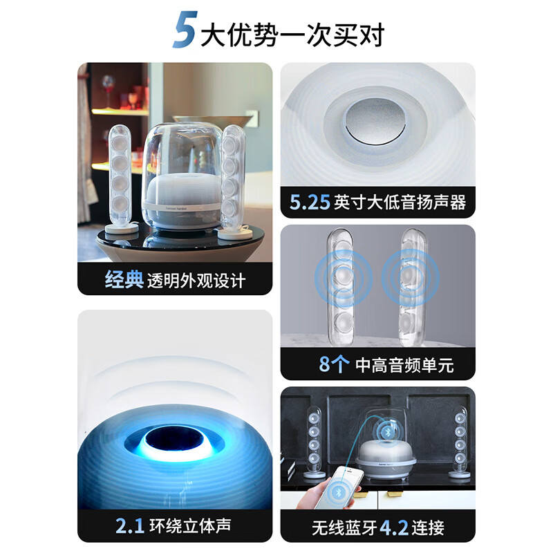 哈曼卡顿水晶四代 家庭影院音响 水晶4代桌面音箱 电视电脑音响 礼物氛围音响 Soundsticks4白色价格:1979.00元!