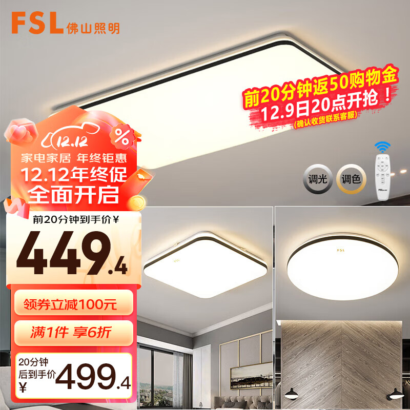 FSL佛山照明灯具套餐LED吸顶灯智能客厅卧室灯遥控调色两室一厅54058价格:999.00元!