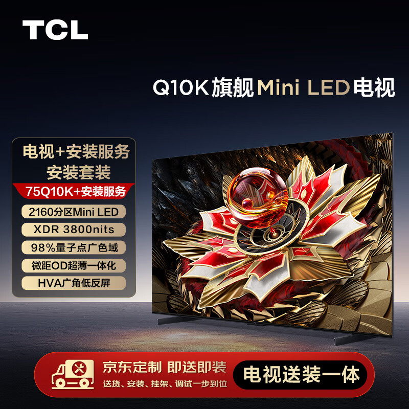 TCL【送装一体版】安装套装-75Q10K 75英寸 旗舰Mini LED电视 Q10K+安装服务含挂架价格:9198.00元!