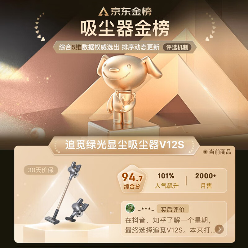 追觅吸尘器V12S 家用无线手持 185AW大吸力 90分钟长续航 绿光显尘价格:1599.00元!