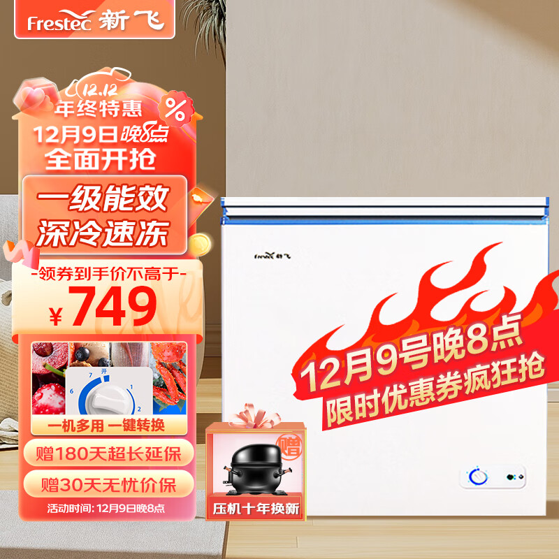 新飞(Frestec)201升冷藏冷冻转换一级能效家用商用变温冷柜卧式冰箱冰柜(白色)BC/BD-201KHAT价格:799.00元!