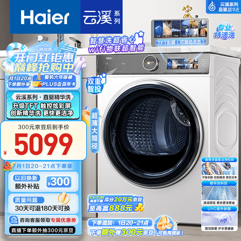 海尔(Haier)滚筒洗衣机全自动 云溪386W 家用10公斤【直驱精华洗XQG100-BD14386WTLU1】超薄内衣洗 以旧换新价格:5399.00元!