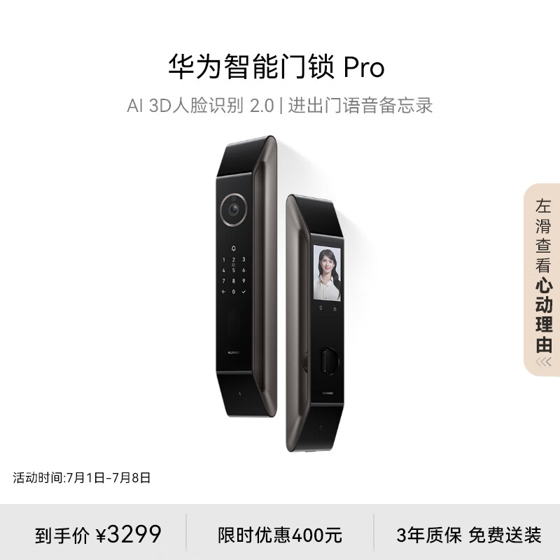 华为智能门锁Pro AI.3D人脸识别 进出门语音备忘录【2023全新升级】 AI指纹锁 电子锁 免费送装拆旧价格:3299.00元!