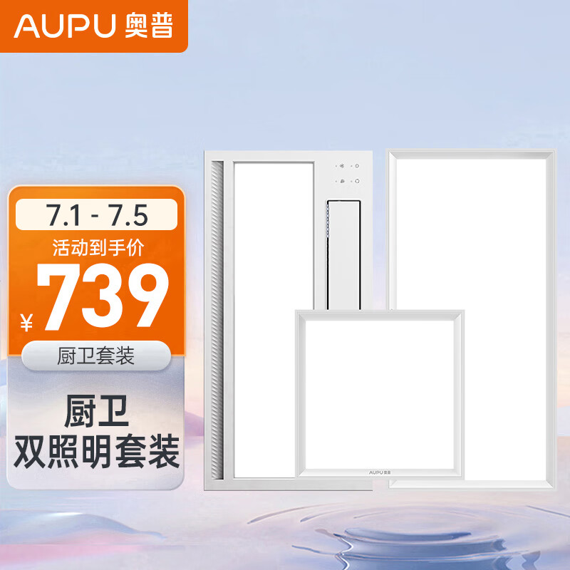 奥普(AUPU)浴霸S368M风暖浴霸大摆风接入米家+长灯+方灯照明套装(附件形式)价格:1069.00元!
