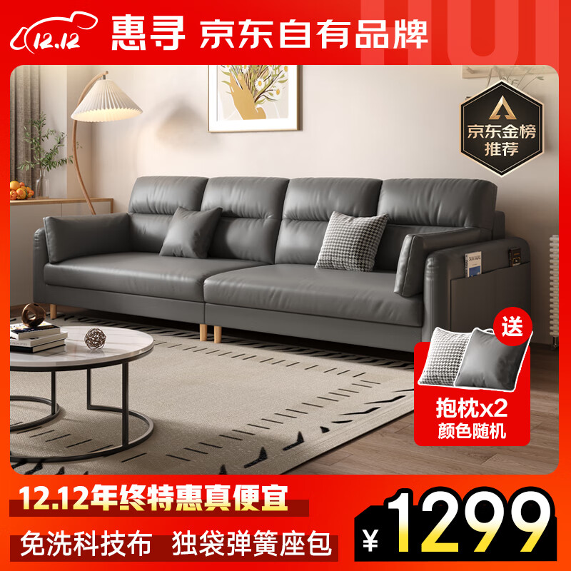 惠寻 京东自有品牌 科技布艺沙发客厅小户型直排独袋弹簧四人位2.7米价格:1329.00元!