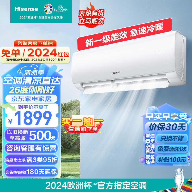 海信(Hisense)1.5匹 速冷热 新一级能效变频冷暖 高温自清洁APP远程遥控壁挂式卧室空调挂机KFR-34GW/E270-X1价格:1899.00元!