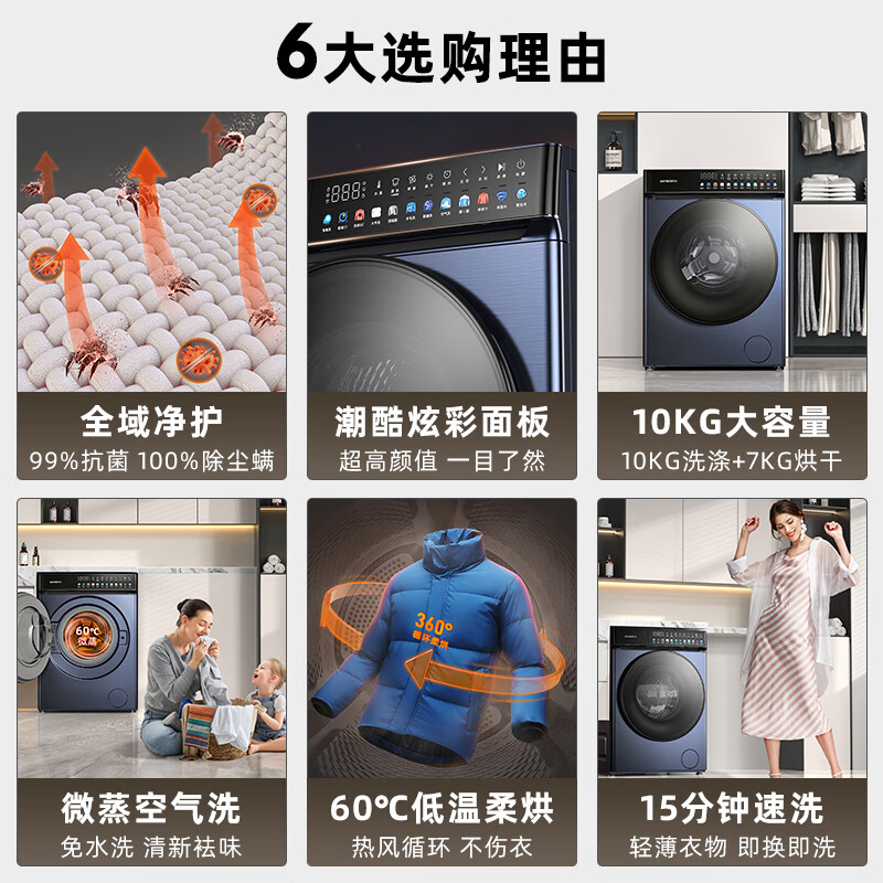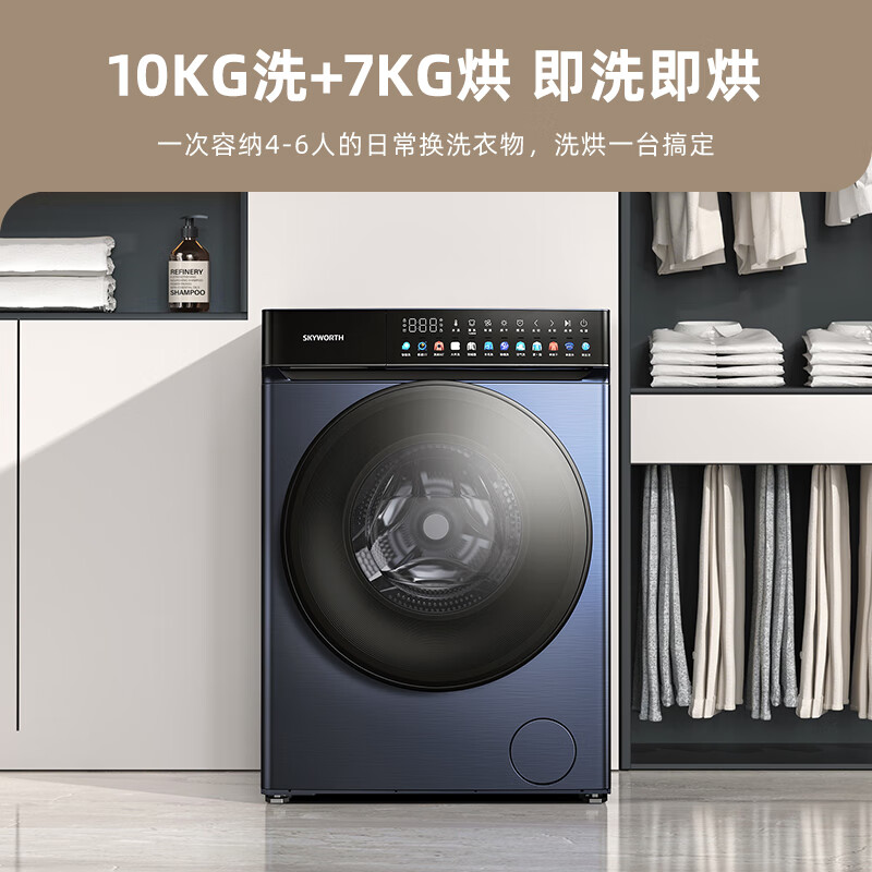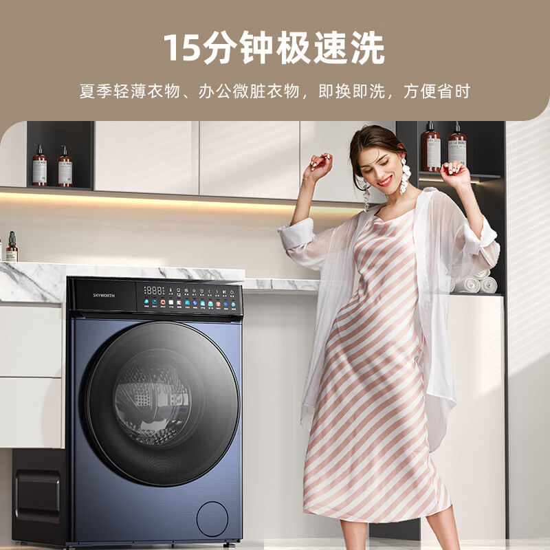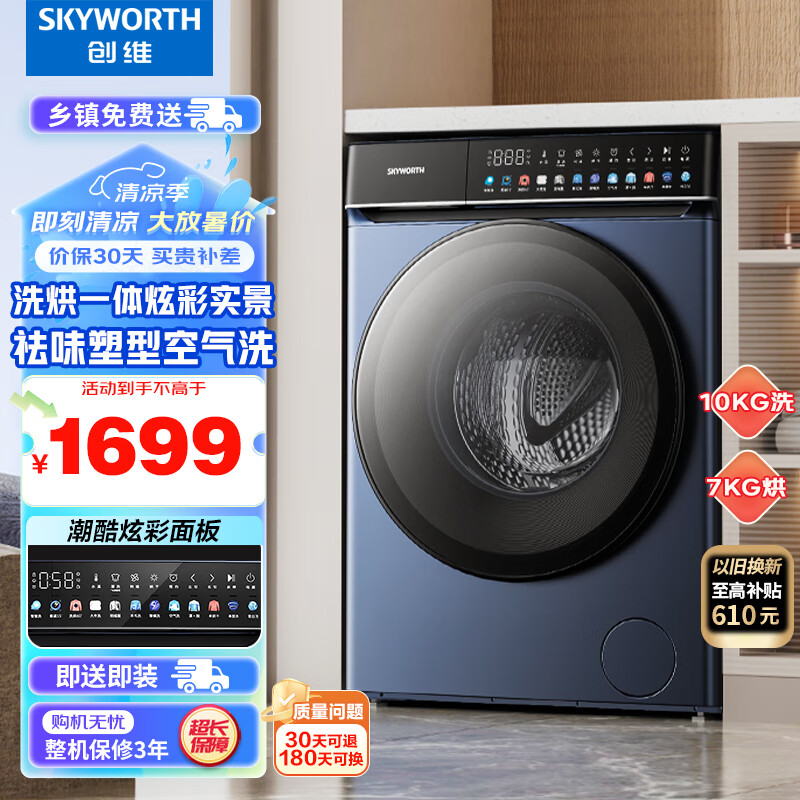 创维(SKYWORTH)10公斤变频滚筒洗衣机全自动 洗烘一体 除螨 炫彩触控 家用大容量 XQG100-B63RBH价格:1699.00元!