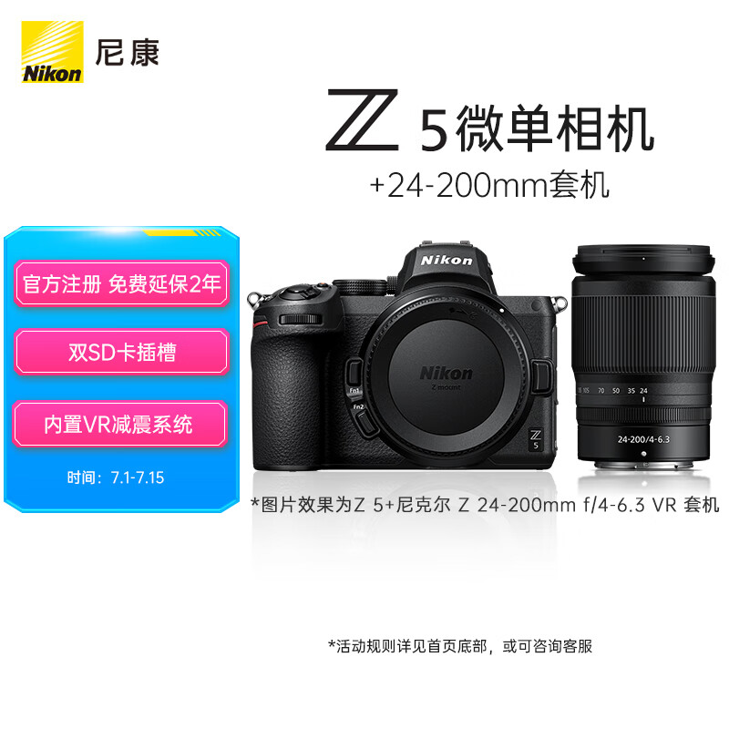 尼康(Nikon)Z5全画幅微单相机 微单套机 ( Z 24-200mm f/4-6.3 VR 微单镜头)Vlog相机价格:14299.00元!