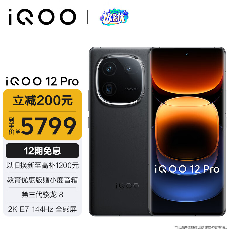 vivo iQOO 12Pro 16GB+1TB赛道版 2K E7 144Hz屏幕 大底主摄潜望式长焦 第三代骁龙 8 5G电竞手机价格:5999.00元!