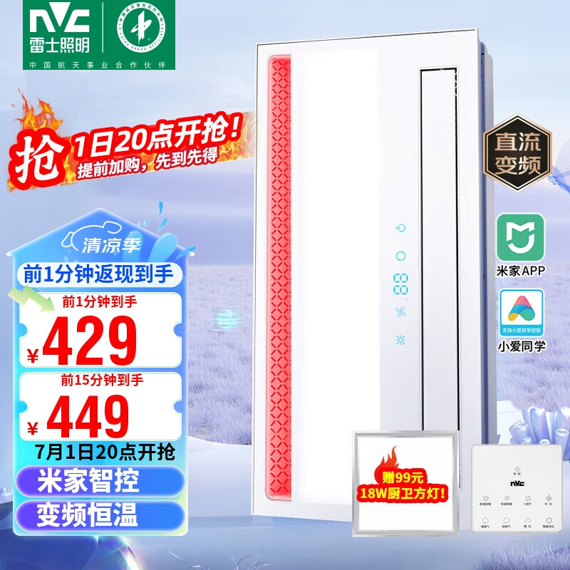 雷士(NVC)米家智能变频浴霸暖风照明排气一体机浴室电暖器集成吊顶Y287价格:899.00元!
