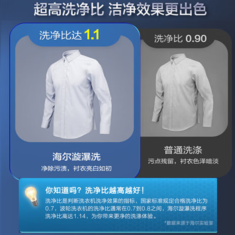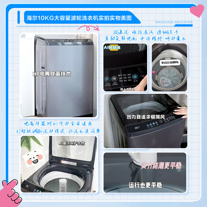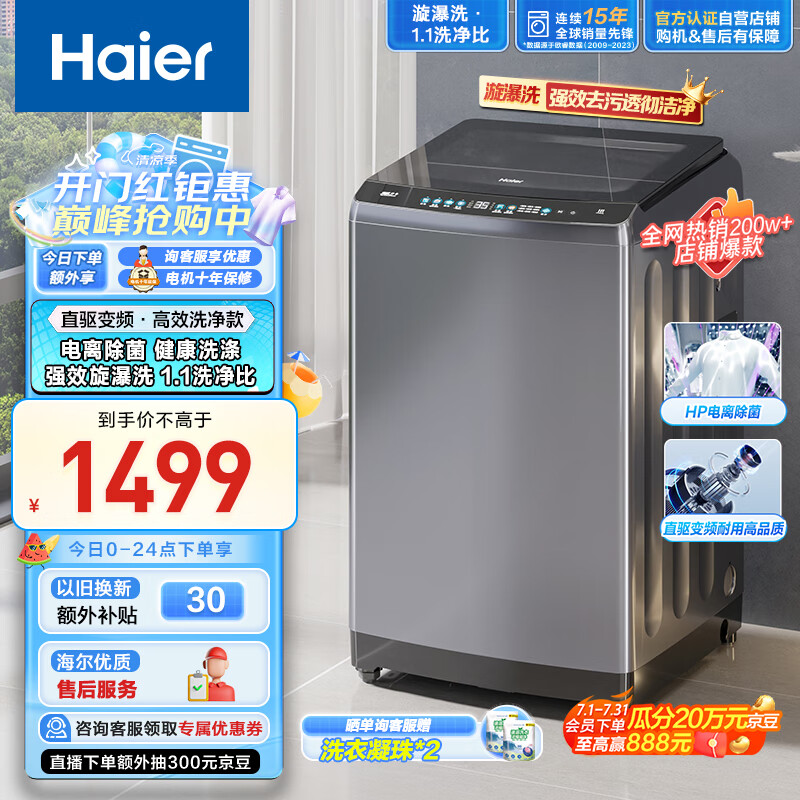 海尔(Haier)波轮洗衣机全自动家用 10公斤大容量 直驱变频一级能效 漩瀑洗高洗净比 以旧换新EB100B26Mate3价格:1499.00元!