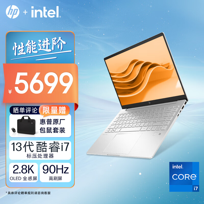 惠普HP 星Book Pro 14英寸轻薄笔记本电脑(13代酷睿i7-13700H 16G 1TB 2.8K 90Hz OLED全感屏)银价格:5699.00元!