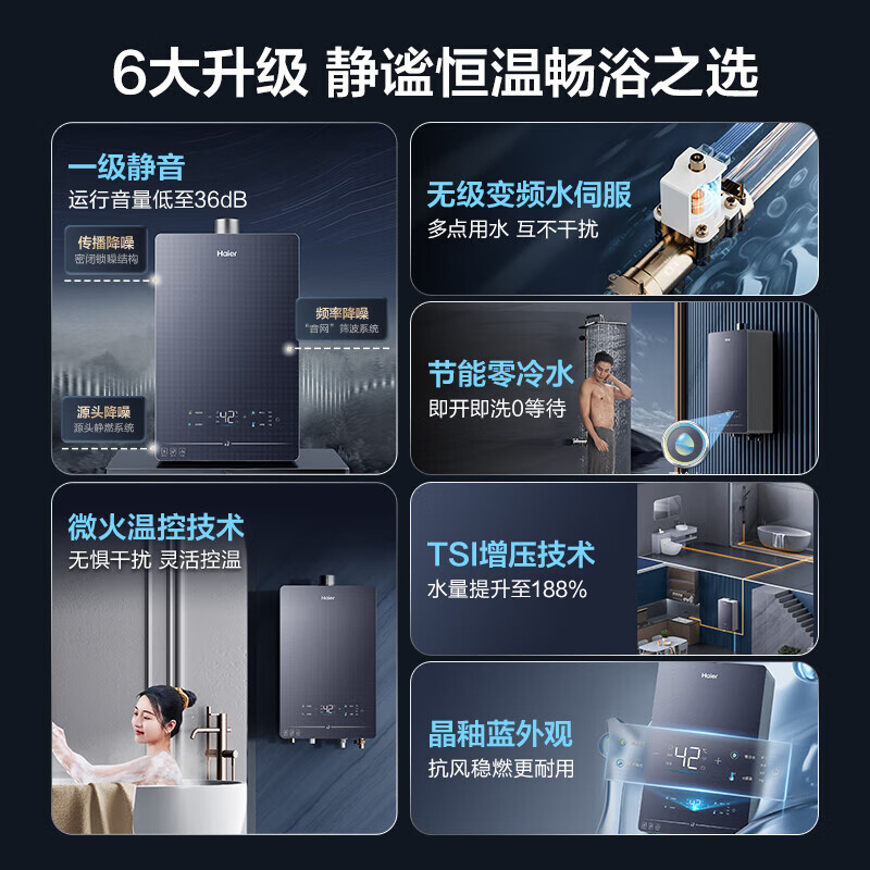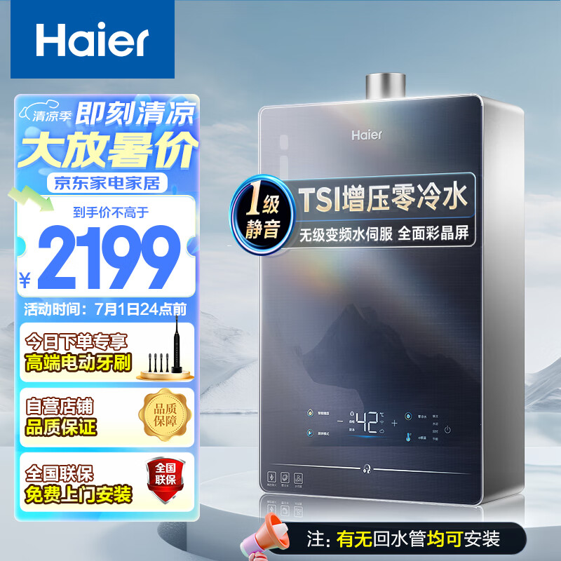 海尔(Haier)16升燃气热水器天然气【QR5】 TSI增压零冷水 无级变频水伺服 静音JSQ30-16QR5DPQGU1【以旧换新】价格:2399.00元!