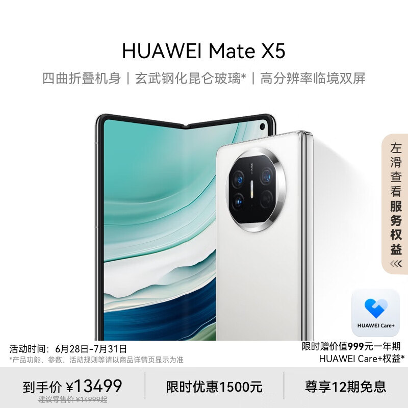 华为(HUAWEI) Mate X5 折叠屏手机 16GB+512GB 羽砂白价格:13499.00元!