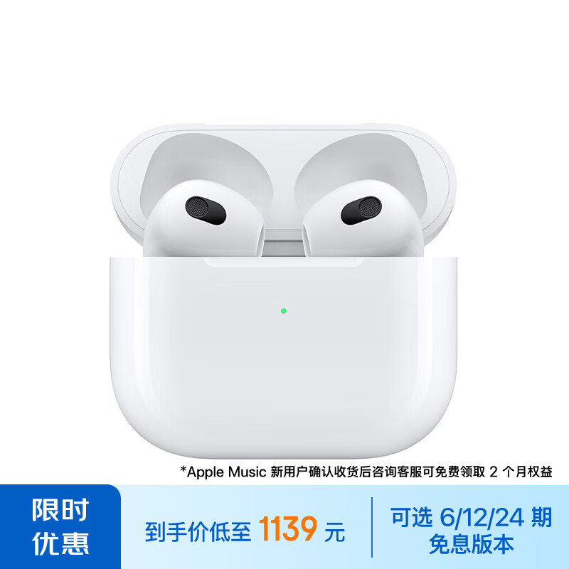 Apple/苹果 AirPods (第三代) 配MagSafe无线充电盒 苹果耳机 蓝牙耳机 适用iPhone/iPad/Watch/Mac价格:1139.00元!