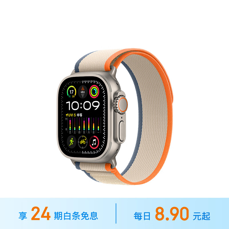 Apple【24期免息】Watch Ultra2智能手表蜂窝款49毫米钛金属表壳橙配米色野径回环式表带M/L MRFM3CH/A价格:6499.00元!