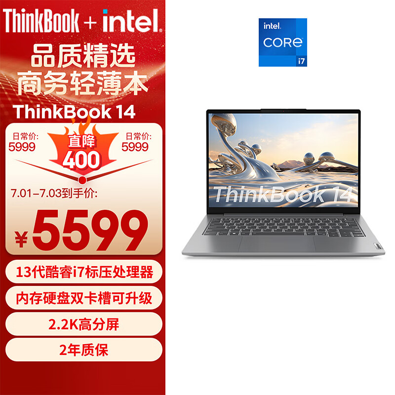 ThinkPad联想ThinkBook 14 英特尔酷睿i7 14英寸便携轻薄办公笔记本电脑13代i7-13700H 16G 1T 2.2K 高色域价格:5599.00元!