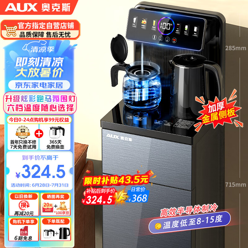 奥克斯(AUX)家用立式彩屏显温饮水机 多档控温一键直达 双区取水24H保温 智能遥控茶吧机制冷款YCB-0.75-76价格:368.00元!
