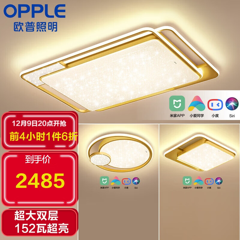 欧普(OPPLE)吸顶灯几何现代简约LED客厅卧室餐厅灯具套餐智能语音调光 套餐1价格:4499.00元!