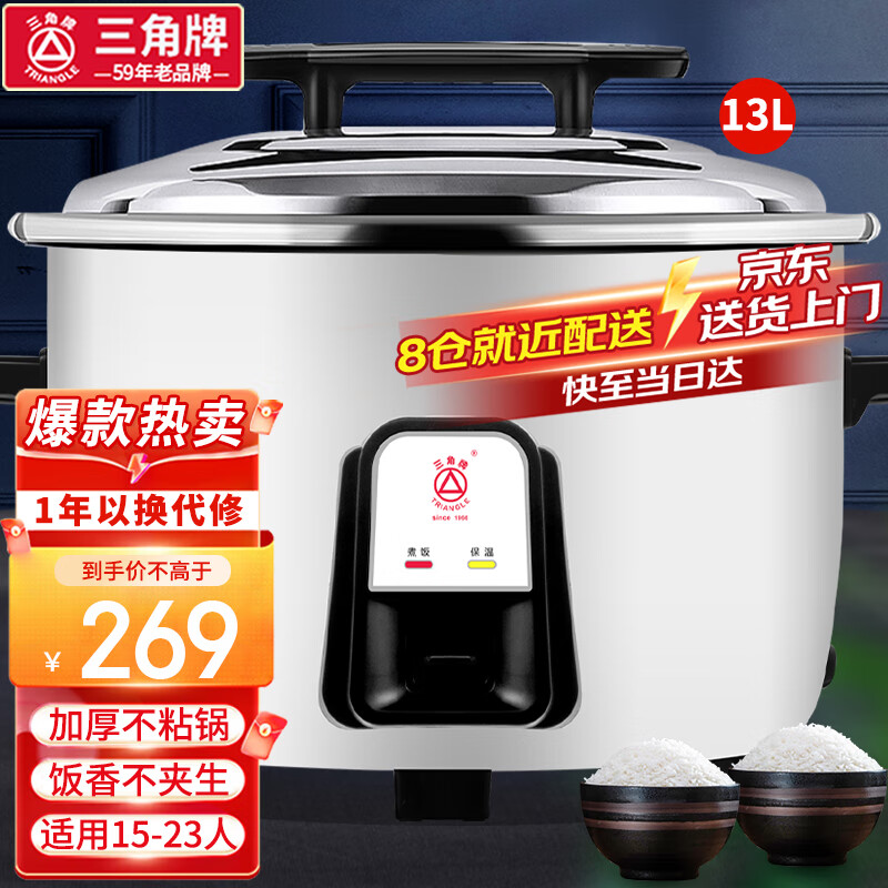 三角牌(Triangle)电饭煲商用电饭煲大容量电饭锅食堂大电饭煲酒店饭店大型超大蒸饭锅 13升 15-23人用价格:279.00元!