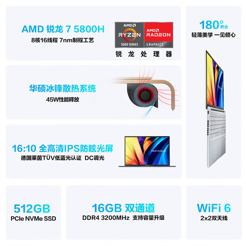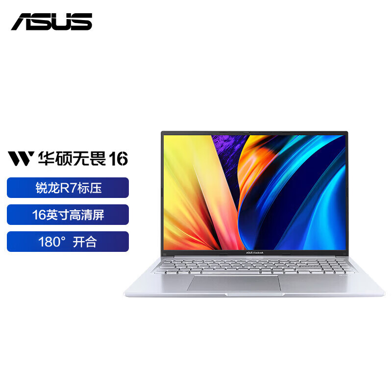 华硕无畏16 16英寸高性能超薄本学生办公全能轻薄笔记本电脑(八核标压R7 16G512G莱茵护眼屏防眩光)银价格:5199.00元!
