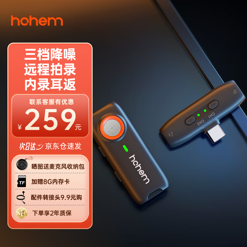 浩瀚(hohem) Mic-01无线领夹麦克风直播话筒收音麦讲解器手机K歌设备主播短视频单反录音安卓黑色一拖一type-c价格:259.00元!