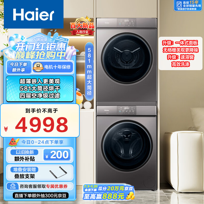海尔(Haier)超薄全嵌洗烘套装 10KG滚筒洗衣机全自动+热泵烘干机家用 速溶窗高效洗涤 MATE36+36S 以旧换新价格:4998.00元!