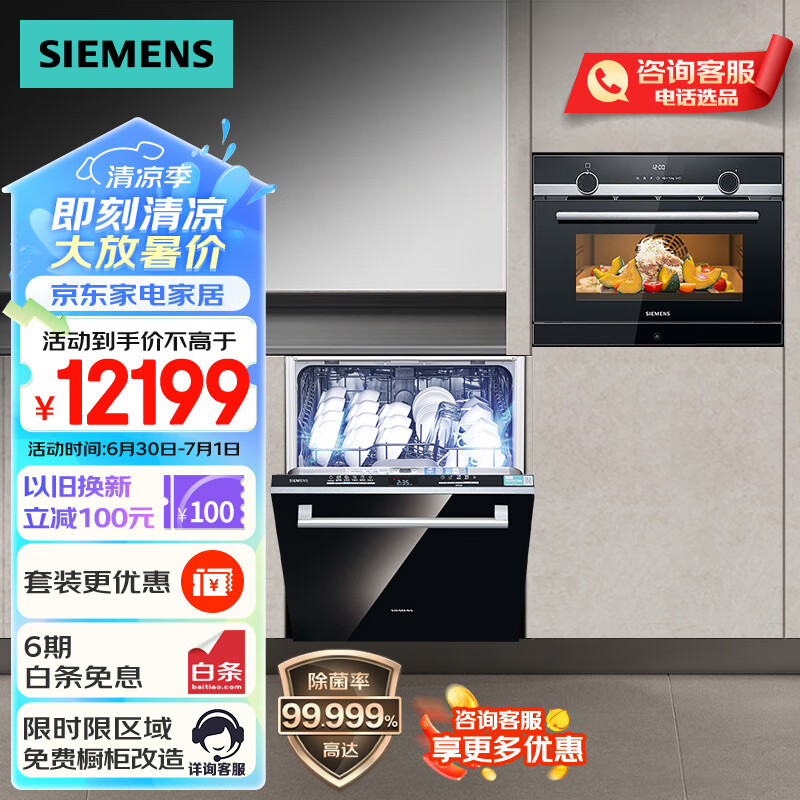 西门子14套大容量嵌入式洗碗机开门烘干 嵌入式微蒸烤一体机套装 636Pro(含黑门板)+CP565价格:12199.00元!