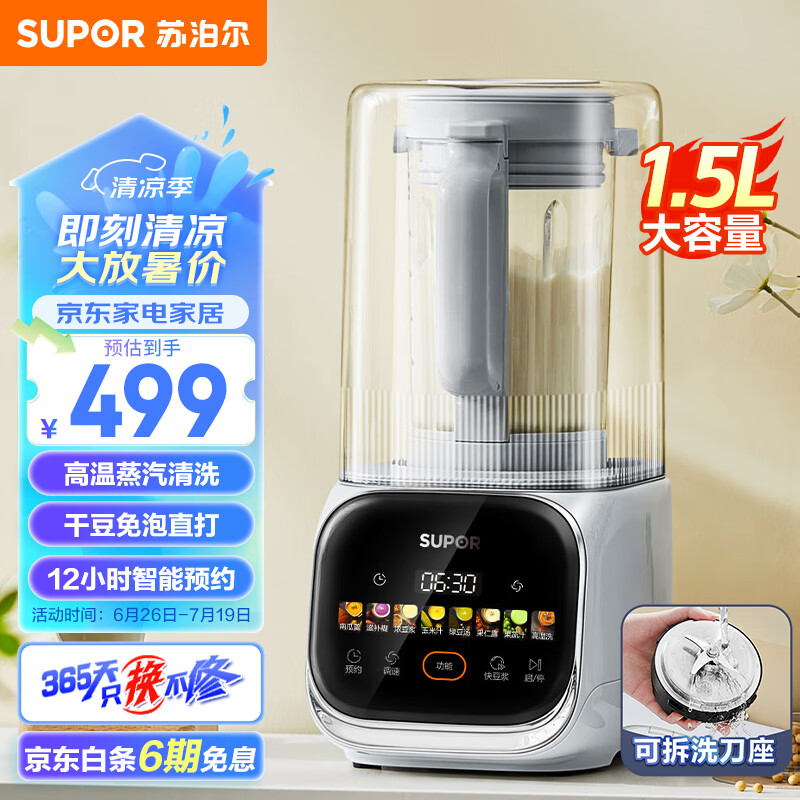 苏泊尔(SUPOR)低音降噪破壁机 1.5L大容量家用豆浆机可拆洗榨汁机 全自动加热早餐机辅食机 SPJ617R价格:499.00元!