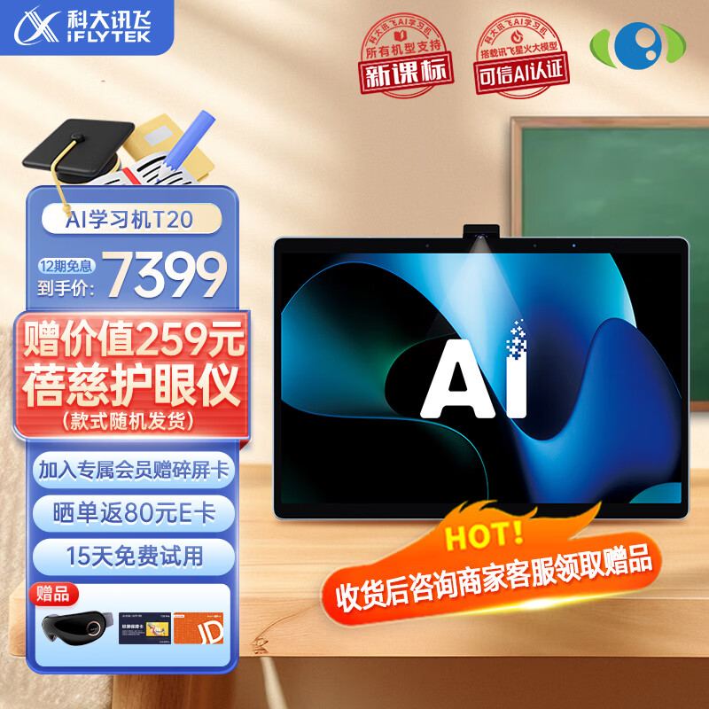 科大讯飞AI学习机T20 (8+256GB) 星火大模型 学生平板小学到高中 幼小初高全龄段智能护眼家教机 13.3英寸价格:7399.00元!
