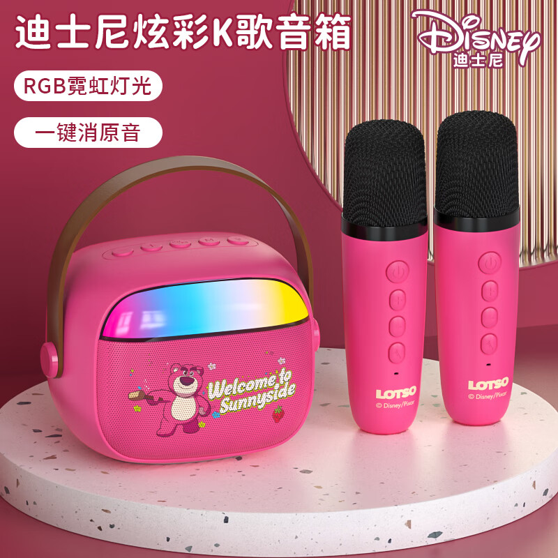 迪士尼(DISNEY)话筒音响一体麦克风k歌音箱自带声卡家庭ktv音响套装无线蓝牙儿童玩具生日礼物娱乐 MK30草莓熊价格:169.00元!