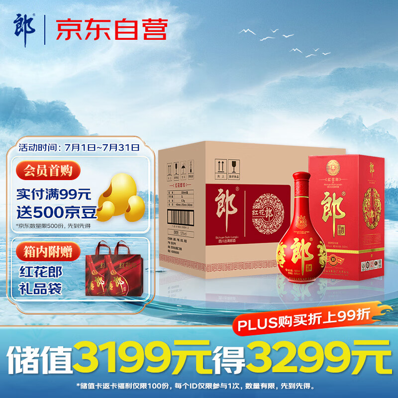 郎酒 红花郎10 酱香型白酒 53度 500ml*6瓶 整箱装价格:2526.00元!