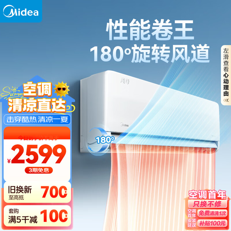 美的(Midea)大1匹 风尊 时尚版 新一级能效 变频冷暖 独立除湿 壁挂式空调挂机 智能家电 KFR-26GW/N8MXC1价格:2599.00元!