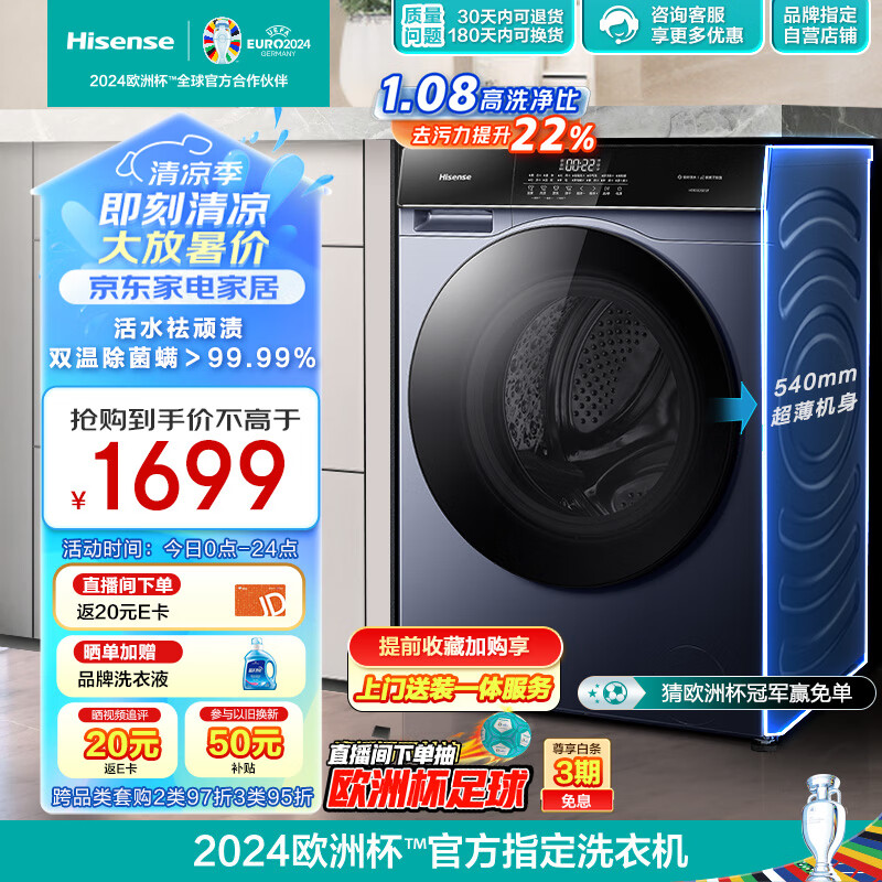 海信(Hisense)滚筒洗衣机全自动 10公斤大容量家用超薄 除菌螨羊毛洗 活水洗高洗净比 HG100DSE12F以旧换新价格:1699.00元!