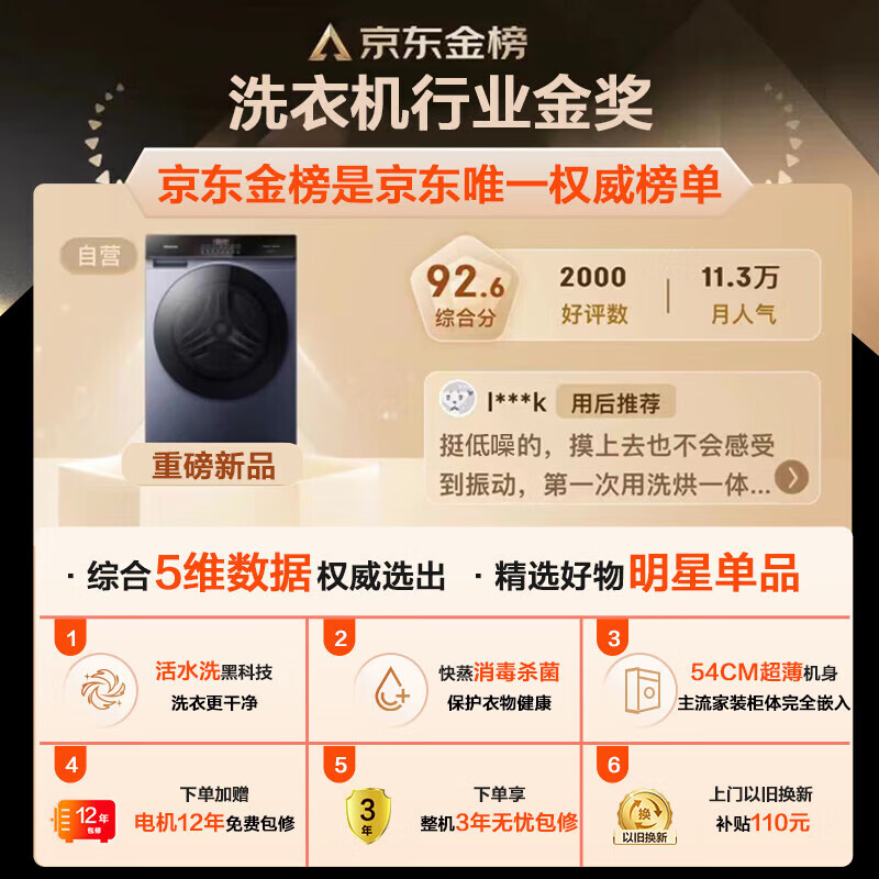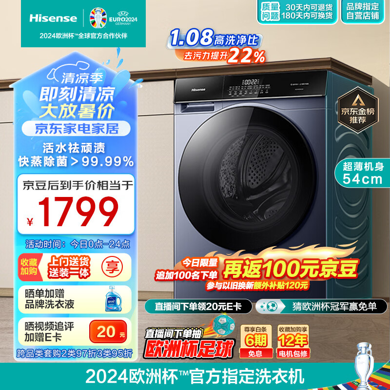 海信(Hisense)滚筒洗衣机全自动 10公斤洗烘一体大容量家用超薄 活水洗 快蒸消毒高洗净比HD100DSE12F以旧换新价格:1899.00元!
