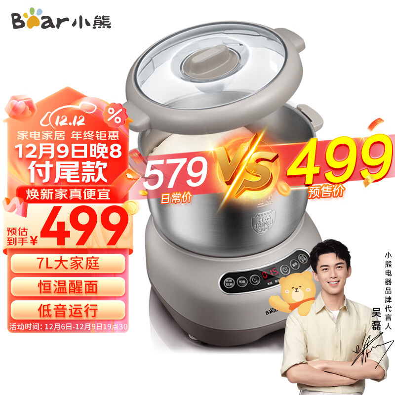小熊(Bear)和面机 全自动家用商用揉面机 大容量活面机 面粉搅拌打面机 厨师机 HMJ-A70C1 7L价格:499.00元!