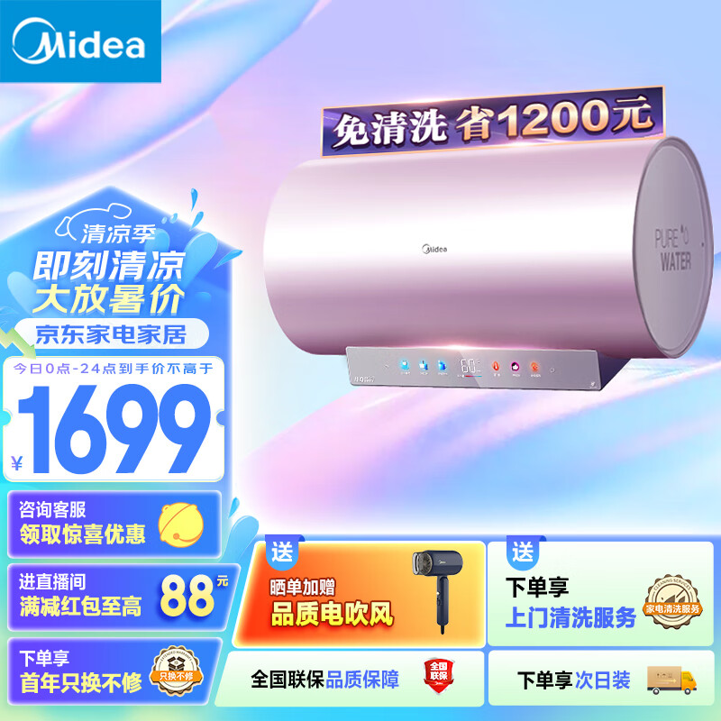 美的(Midea)免清洗电热水器80升家用 3300W变频 出水断电 镁棒免更换 阻垢 一级能效 以旧换新F8033-JE8(HE)价格:1799.00元!
