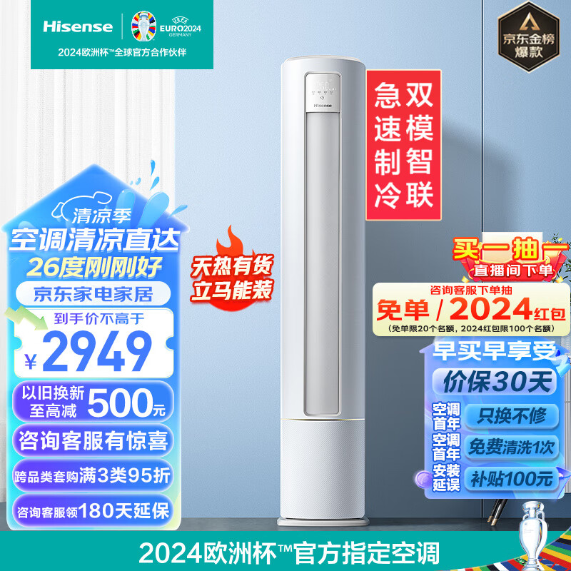 海信(Hisense)2匹 速冷热 三级能效 急速冷暖手机智控 变频冷暖自清洁两匹客厅空调立式柜机KFR-50LW/A190-X3价格:2949.00元!