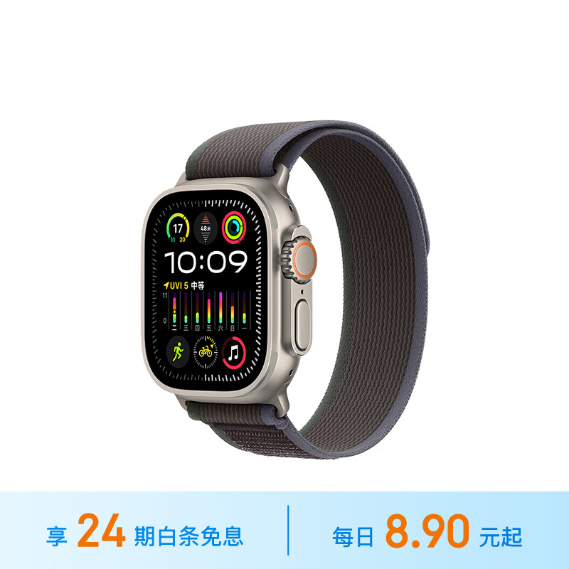 Apple【24期免息】Watch Ultra2智能手表蜂窝款49毫米钛金属表壳蓝配黑色野径回环式表带M/L MRFR3CH/A价格:6499.00元!