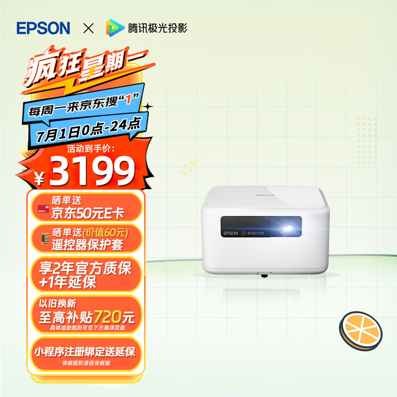 爱普生(EPSON)EF-15W 家用投影仪 3LCD高亮家庭影院智能投影机(0.62”大芯片 1000流明 激光 3LCD技术)价格:3299.00元!