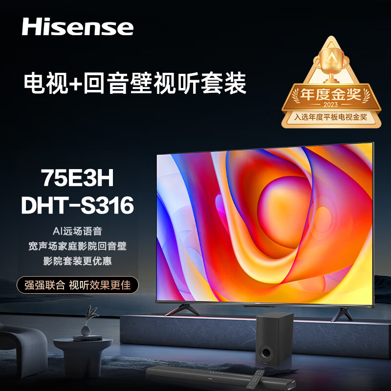 海信电视75E3H+DHT-S316沉浸追剧套装 75英寸 120Hz 2+32GB 远场语音 MEMC防抖大屏液晶平板电视机价格:3998.00元!