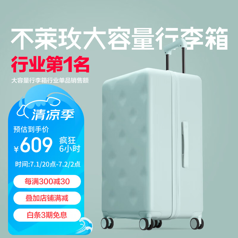 不莱玫大容量行李箱女旅行箱学生26英寸plus高颜值拉杆箱子男 灰绿色价格:859.00元!