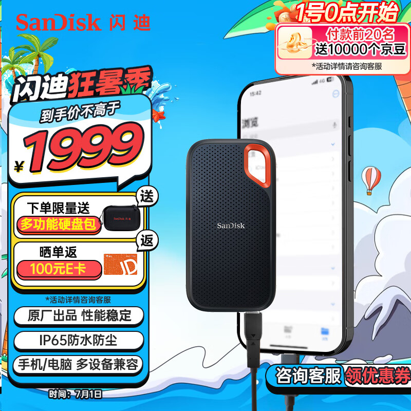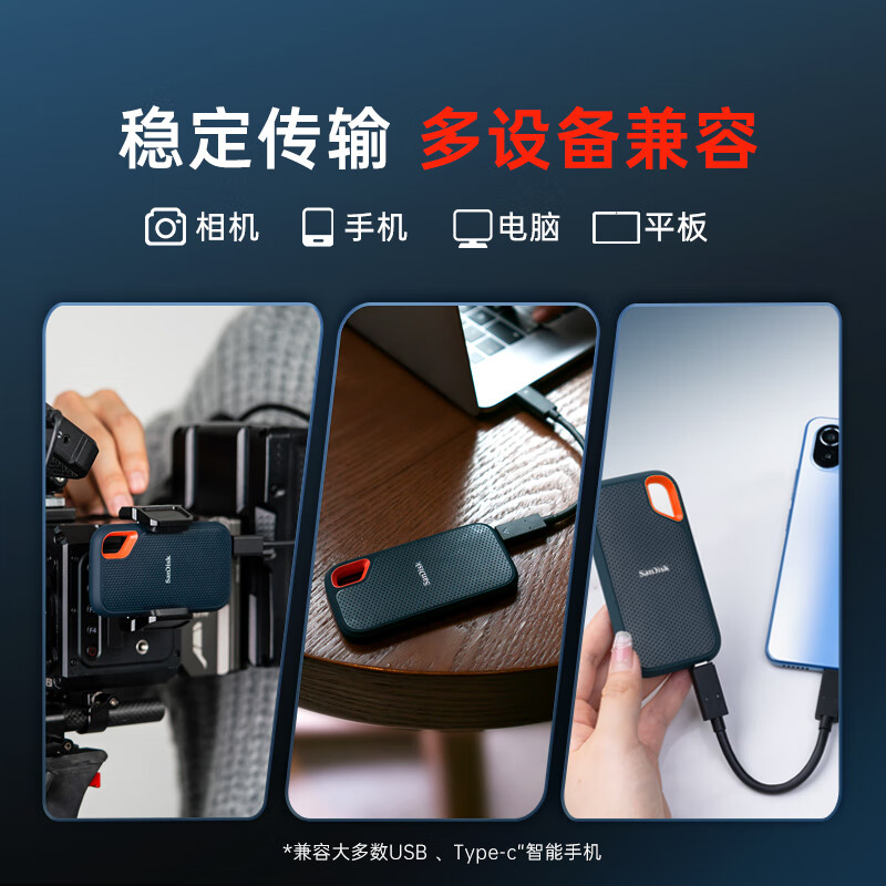 闪迪(SanDisk)4TB Nvme 移动固态硬盘(PSSD)E61极速版SSD 读速1050MB/s 手机直连笔记本外接 三防保护价格:1999.00元!