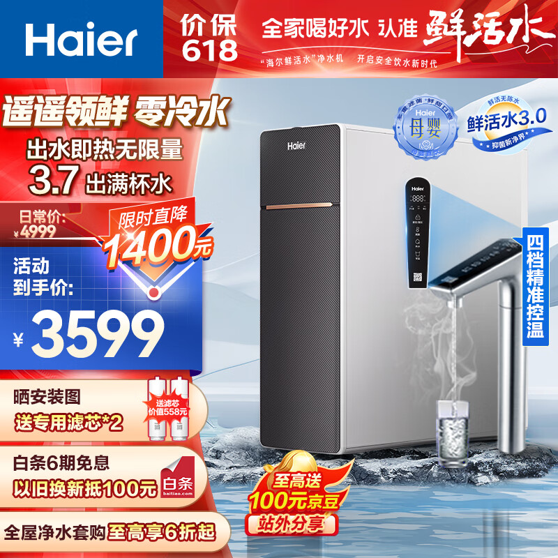 海尔(Haier)新品1000G鲜腾加热直饮一体机家用净水器即热零冷水厨下式RO反渗透过滤器直饮机HKC2400-R995HU1价格:3599.00元!