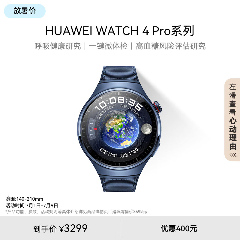 华为【送礼送健康】WATCH 4 Pro华为手表智能手表呼吸健康研究华为运动手表蔚蓝地球价格:3299.00元!