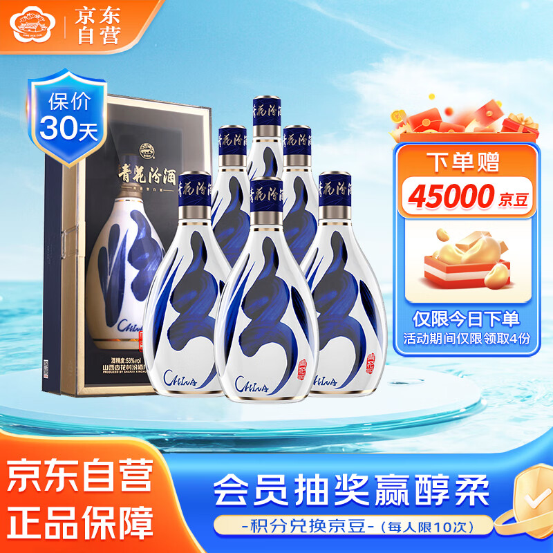 汾酒 青花30复兴版 清香型白酒 53度 500ml*6瓶 整箱装 送礼宴请价格:6594.00元!