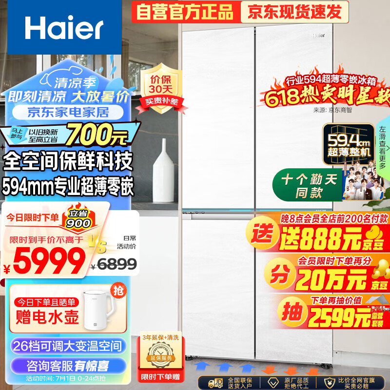 海尔(Haier)475L和景全空间保鲜594mm专业超薄零嵌十字T型四开门电冰箱一级能效嵌入式BCD-475WGHTD1BGZU1价格:5999.00元!