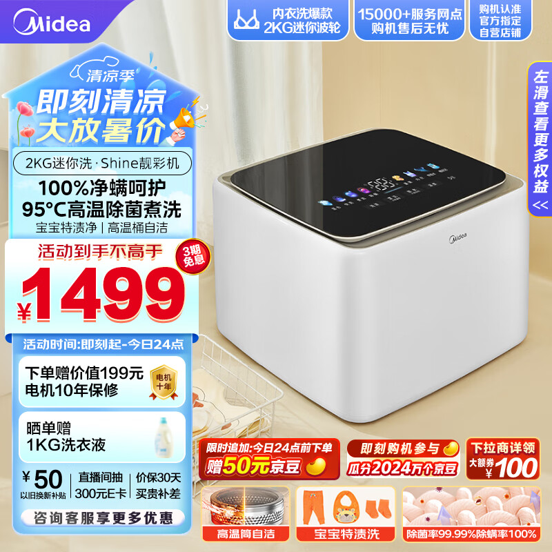 美的(Midea)2KG迷你洗衣机全自动 美的焕净内衣洗衣机小型 迷你洗衣机 婴儿洗衣机 95℃除菌净螨 MNB20-01W价格:1499.00元!