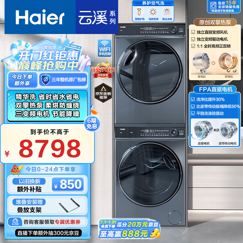 海尔(Haier)云溪纤美376洗烘套装 10KG精华洗超薄滚筒洗衣机全自动+双擎热泵烘干机家用组合 376+376 以旧换新价格:8798.00元!